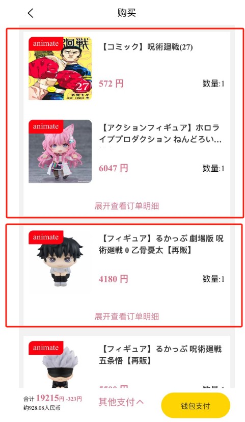 1、区分同捆订单 并不是一同付款就代表所有的商品属于同一个订单,可能会遇到拆单的情况,例如:部分商品只允许单独打包,发售日期相差过远等,下图为订单拆分时的显示方式,每个红框代表一个订单,单独计算邮费,用户可点击展开查看订单明细,来确认每笔订单的邮费情况。